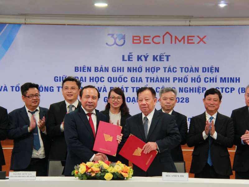 Chiều 2/8/2024, tại Nhà Điều hành ĐHQG-HCM, Tổng Công ty Đầu tư và Phát triển Công nghiệp (Becamex IDC) và ĐHQG-HCM đã ký kết biên bản ghi nhớ hợp tác toàn diện giai đoạn 2024-2028. Lễ ký kết nhằm phát triển nguồn nhân lực chất lượng cao, thúc đẩy nghiên cứu, phát triển khoa học và công nghệ, đổi mới sáng tạo. -