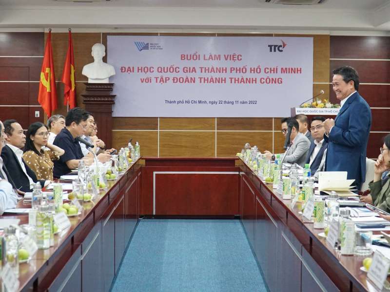Chiều 22/11, ĐHQG-HCM đã có buổi làm việc với Tập đoàn Thành Thành Công (TTC) tại Nhà Điều hành ĐHQG-HCM. PGS.TS Vũ Hải Quân - Giám đốc ĐHQG-HCM, đã đến dự. -