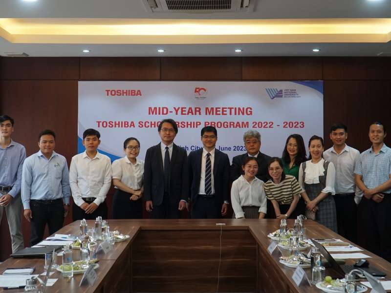 Sáng 8/6, tại Nhà Điều hành ĐHQG-HCM, 8 học viên cao học và nghiên cứu sinh của ĐHQG-HCM đã tham gia buổi Báo cáo giữa kỳ học bổng Toshiba năm học 2022-2023. TS Masanori Hattori - Tổng Giám đốc Văn phòng Hoạch định Công nghệ Chiến lược, Bộ phận Hoạch định Công nghệ Doanh nghiệp của Tập đoàn Toshiba, đã đến dự. -