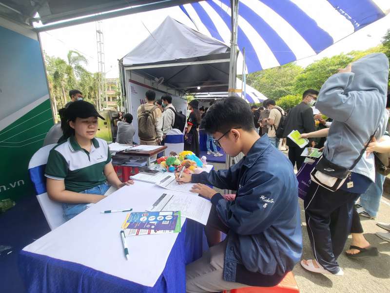 Gần 300 sinh viên tham gia Ngày hội việc làm năm 2023 do Khoa Y ĐHQG-HCM tổ chức với chủ đề “Kết nối tương lai” tại tòa nhà hành chính YA1, tỉnh Bình Dương vào ngày 27/5. -