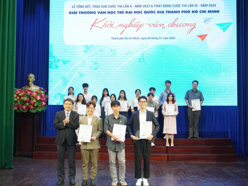Chiều 9/1, tại Trường ĐH KHXH&NV (cơ sở Đinh Tiên Hoàng, Q1) đã diễn ra Lễ Tổng kết, trao giải cuộc thi Giải thưởng Văn học trẻ ĐHQG-HCM lần II - năm 2023 và phát động Giải thưởng năm 2024. -