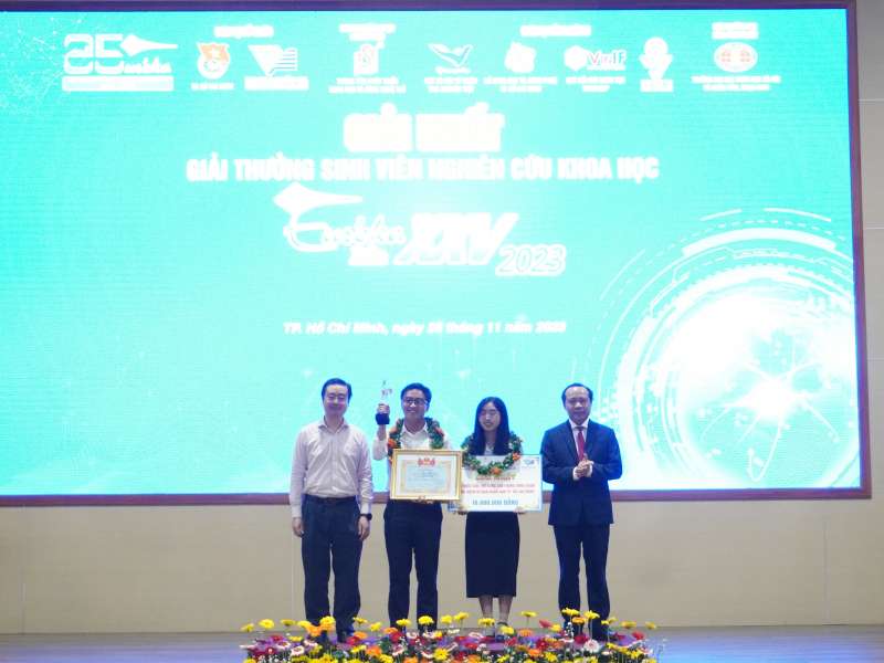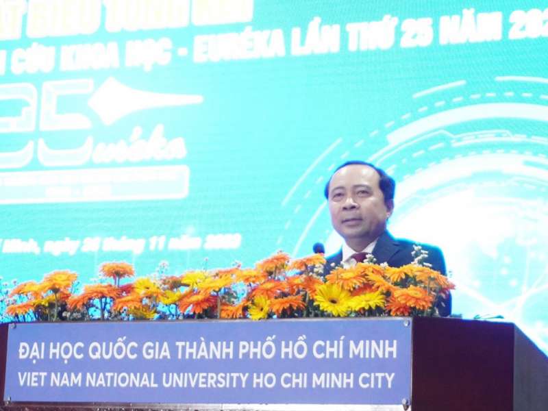 38 nhóm tác giả của ĐHQG-HCM đã được vinh danh tại Lễ kỷ niệm 25 năm và tổng kết, trao giải Giải thưởng Sinh viên nghiên cứu khoa học Euréka lần thứ 25 năm 2023, diễn ra tại Nhà điều hành ĐHQG-HCM vào sáng 26/11. PGS.TS Vũ Hải Quân - Giám đốc ĐHQG-HCM, đã đến dự.