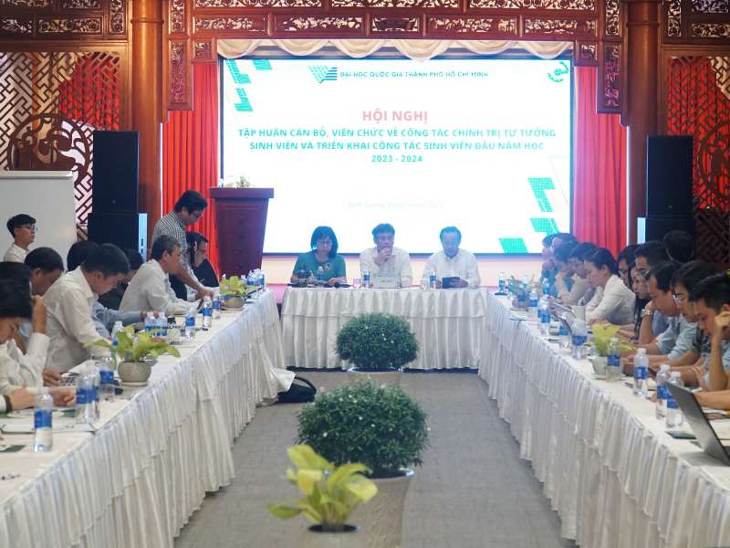 Chiều 13/7, tại TP Thuận An (Bình Dương), ĐHQG-HCM tổ chức Hội nghị tập huấn cán bộ, viên chức về công tác chính trị tư tưởng sinh viên và triển khai công tác sinh viên đầu năm học 2023-2024. PGS.TS Nguyễn Minh Tâm - Phó Giám đốc ĐHQG-HCM, đã đến dự.