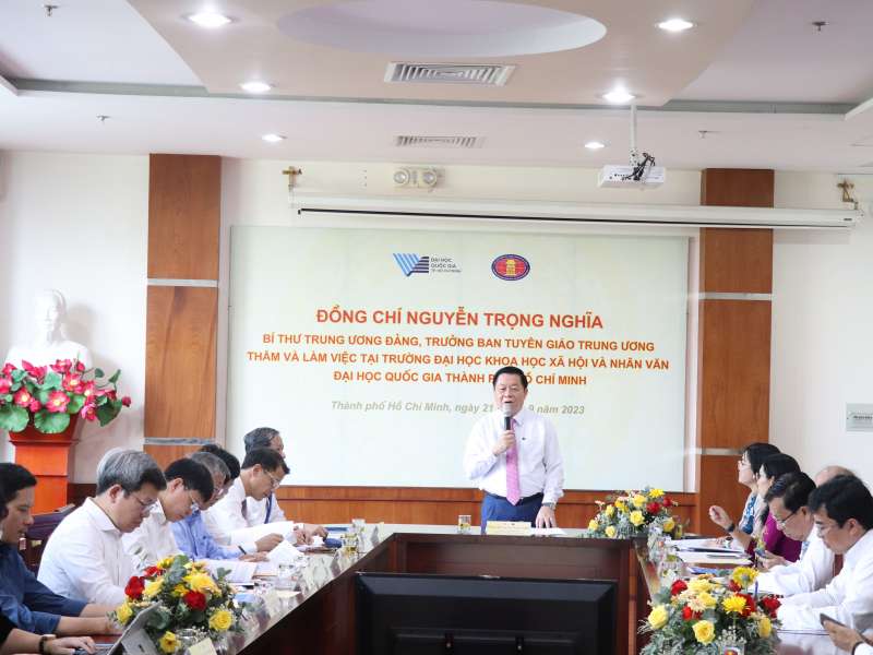TS Nguyễn Đức Nghĩa - Phó Giám đốc cùng lãnh đạo các ban chức năng của ĐHQG-HCM tiếp đón đoàn Trường ĐH Phạm Văn Đồng do TS Trần Văn Minh - Phó Bí thư tỉnh ủy Quảng Ngãi kiêm Chủ tịch Hội đồng trường cùng đại diện các ban ngành chức năng.