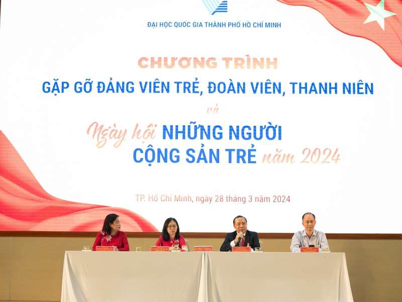 Ngày 28/3, ĐHQG-HCM tổ chức Ngày hội Những người cộng sản trẻ ĐHQG-HCM năm 2024. Ngày hội có sự tham dự của PGS.TS Vũ Hải Quân - Bí thư Đảng uỷ, Giám đốc ĐHQG-HCM; bà Trần Thu Hà - Phó Bí thư Thành Đoàn, Chủ tịch Hội Sinh viên Việt Nam TP.HCM; Ban thường vụ Đảng uỷ ĐHQG-HCM; đại diện lãnh đạo các đơn vị thành viên, trực thuộc ĐHQG-HCM và hơn 300 đảng viên trẻ, đoàn viên ĐHQG-HCM.