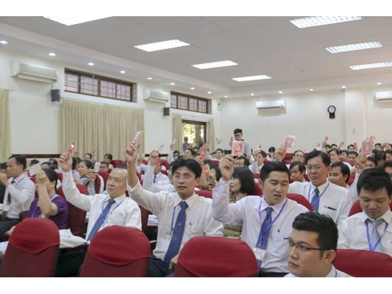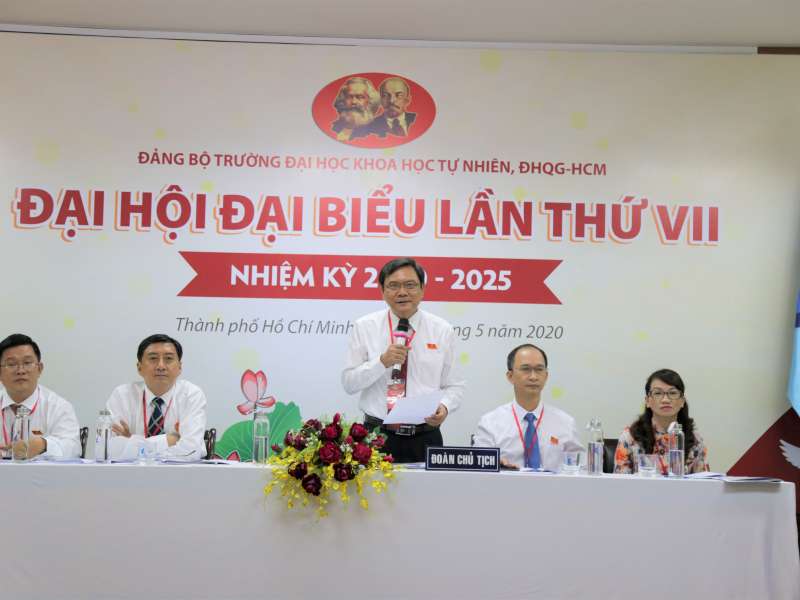 Đại hội Đại biểu Đảng bộ Trường ĐH KHXH&NV lần VII nhiệm kỳ 2020-2025 làm việc trong hai ngày 27 và 28/5 với 120 đại biểu tham dự tại Hội trường Văn Khoa, cơ sở Đinh Tiên Hoàng, Q1. PGS.TS Huỳnh Thành Đạt - Bí thư Đảng ủy, Giám đốc ĐHQG-HCM - đến dự và phát biểu chỉ đạo.