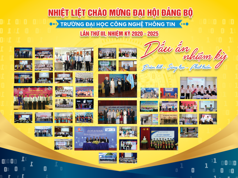 Ngày 27/5, Trường ĐH Công nghệ Thông tin ĐHQG-HCM tổ chức Đại hội Đảng bộ lần III, nhiệm kỳ 2020-2025. PGS.TS. Huỳnh Thành Đạt - Bí thư Đảng uỷ, Giám đốc ĐHQG-HCM, đồng chí Nguyễn Thị Minh Châu - Chánh Văn phòng Đảng ủy ĐHQG-HCM và153 Đảng viên của 11 chi bộ trực thuộc Đảng bộ Trường ĐH Công nghệ Thông tin đến dự. -