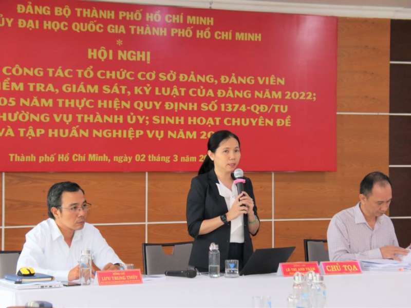Ngày 2/3, Đảng ủy ĐHQG-HCM tổ chức Hội nghị tổng kết công tác tổ chức cơ sở đảng, đảng viên và công tác kiểm tra giám sát, kỷ luật của đảng năm 2022; tổng kết 5 năm thực hiện quy định số 1374-QĐ/TU của Ban Thường vụ Thành ủy. Ông Võ Văn Tân - Phó Trưởng ban Tổ chức Thành ủy TP.HCM tham dự.