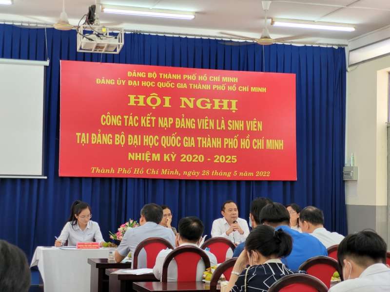 Ngày 28 tháng 5 năm 2022, Đảng ủy Đại học Quốc gia Thành phố Hồ Chí Minh tổ chức Hội nghị Công tác kết nạp đảng viên là sinh viên tại Đảng bộ. Tham dự hội nghị có đồng chí Vũ Hải Quân, Ủy viên Trung ương Đảng, Bí thư Đảng ủy, Giám đốc ĐHQG TP.HCM cùng các đồng chí là Ủy viên Ban thường vụ Đảng ủy, Bí thư Đảng ủy các trường thành viên, đơn vị trực thuộc và 25 chi ủy chi bộ sinh viên tại ĐHQG TP.HCM. -