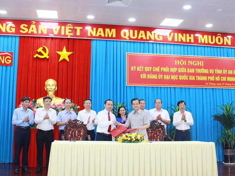 Ngày 27/5, tại Văn phòng Tỉnh ủy An Giang, Đảng ủy Đại học Quốc gia TP. Hồ Chí Minh (ĐHQG-HCM) và Ban Thường vụ Tỉnh ủy An Giang đã ký kết Quy chế phối hợp. -