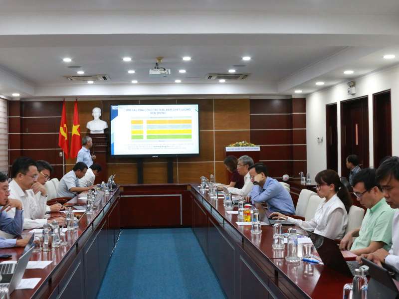 ThS Nguyễn Tiến Công - Trưởng phòng Bảo đảm chất lượng, Trung tâm Khảo thí và Đảm bảo chất lượng ĐHQG-HCM, cho biết như vậy trong phiên họp Hội đồng Đảm bảo chất lượng giáo dục ĐHQG-HCM. Phiên họp được tổ chức tại Nhà Điều hành ĐHQG-HCM do PGS.TS Nguyễn Minh Tâm - Phó Giám đốc ĐHQG-HCM, chủ trì. -