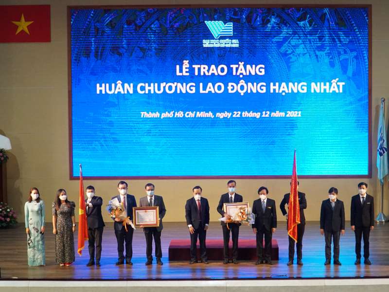 Sáng 22/12, trong khuôn khổ của Hội nghị thường niên ĐHQG-HCM năm 2021, 7 cá nhân công tác tại ĐHQG-HCM đã vinh hạnh nhận được danh hiệu “Nhà giáo Nhân dân” và “Nhà giáo Ưu tú” do Chủ tịch nước phong tặng. 2 tập thể và 1 cá nhân cũng xuất sắc nhận được Huân chương Lao động hạng Nhất do Chủ tịch nước tặng thưởng. -